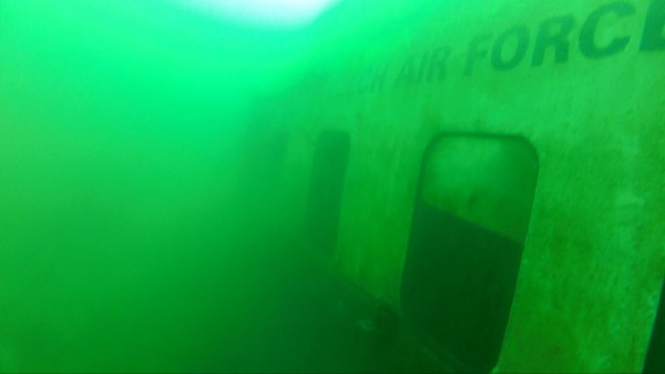 Přibližně v 10 metrech je,asi největší atrakce této lokality,potopený vrtulník.Upozorňuji,že sem nespadl,byl spuštěn do vody záměrně,pro radost návštěníkům.Když je chladnější počasí a ti pohodlnější z potápěčů zůstávají doma,je v lomu prázdno a ideální podmínky pro pozorování života pod vodou.Uvnitř helikoptéry bydlí obrovitá štika.